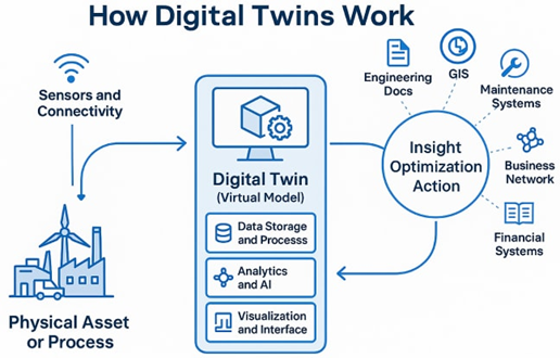 The technology of digital twin is used in various sectors like healthcare, industry, Robotics, Military/aviation, Agriculture, Manufacturing, and aerospace. The environment of a digital twin is created by using IoT devices, data analytics and sensors. The concept of digital twin was introduced by NASA [1] in the Apollo space program. NASA referred to DT as ‘Virtual Digital Fleet Leader’.
