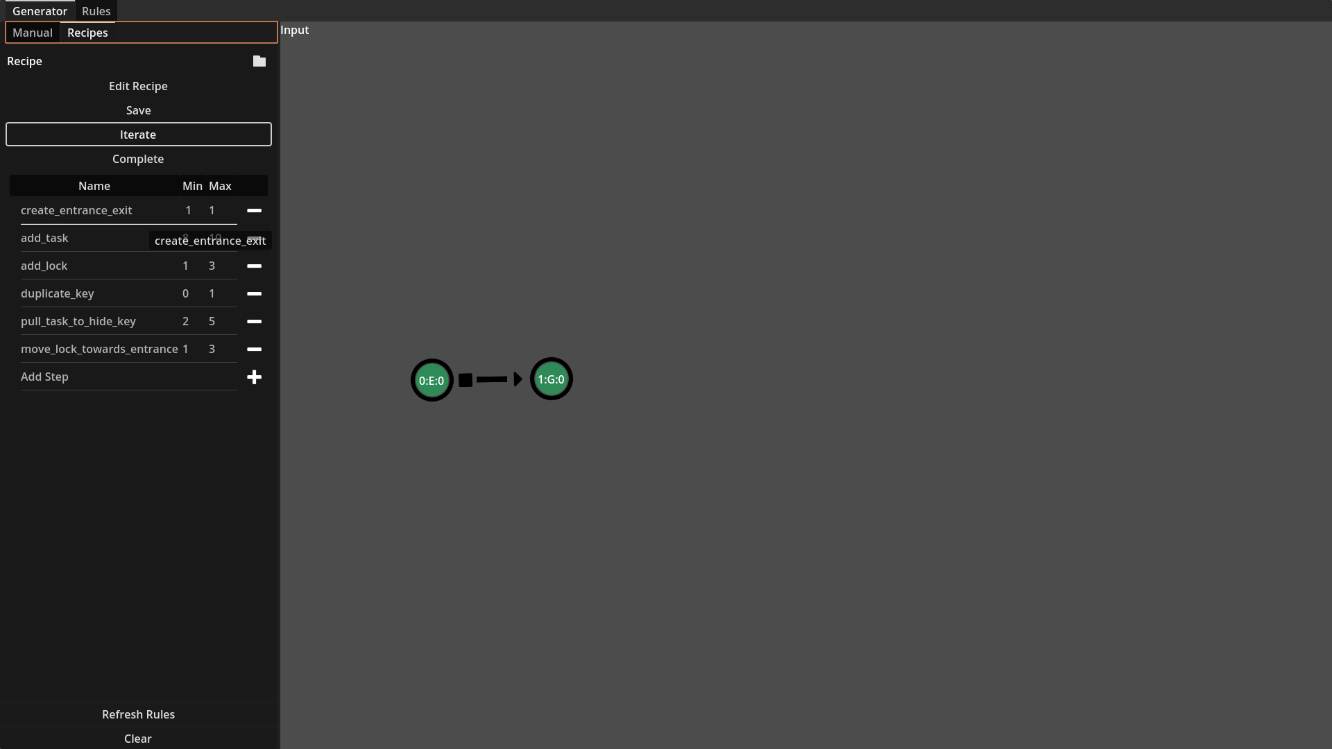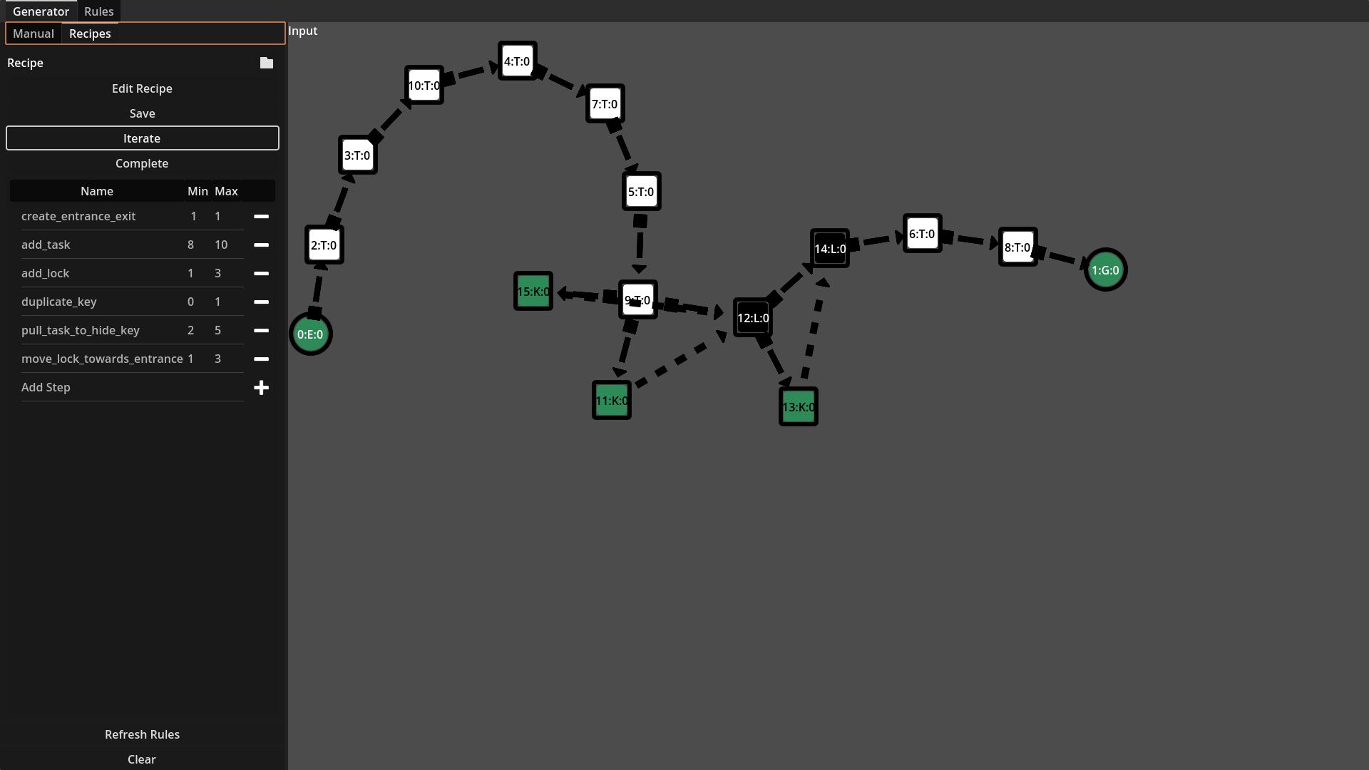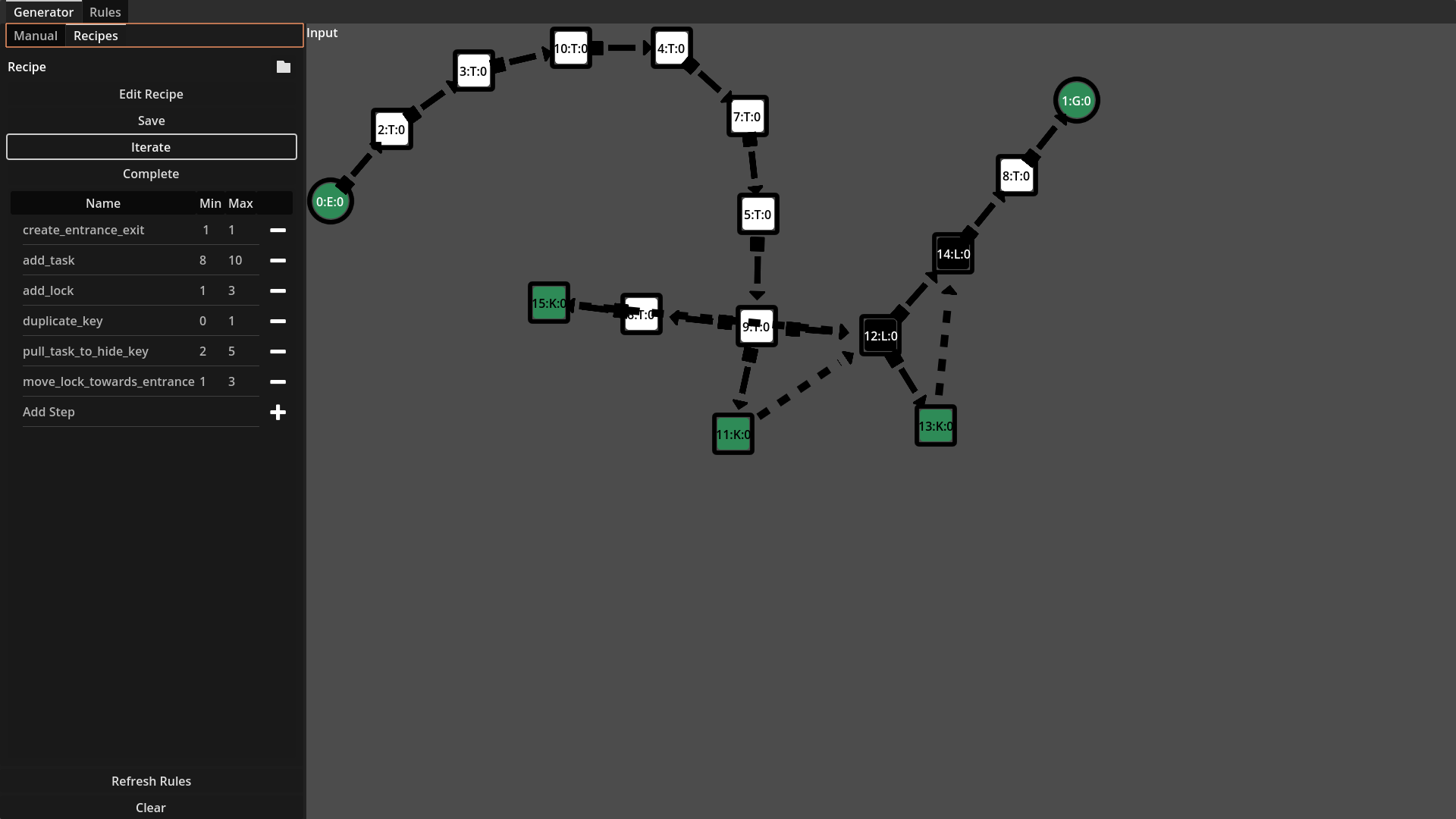- Creating Complexity: These rules transform a simple starting point into a complex, non-linear mission graph. Rules can be used to add tasks, introduce lock-and-key dependencies, create branching paths, or hide keys further from the main route.