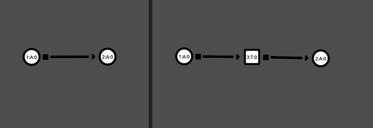 Recipes are the composition of multiple rules, chained together one after the other. The recipe rules can be applied either to a randomly identified pattern or to all identified patterns. Below is a visual example of a recipe being performed. At each step, a basic force-based layout is applied to the