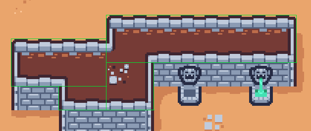 I wanted to give a little life to the game; So far at this point, the background was of a simple, dull gray. Tilemaps are fundamental to most 2D platformers, top-down adventures, survivors, and others of the likes. In this instance, I didn't want to reinvent the wheel and create my own over-engineered level-editing tool, no! Tiled is a fantastic tool to quickly create intricate levels and embed metadata along with them. Identifying collidable objects, such as the map edges very easy. I used the tmxlite library to load-in the tilemap file. Early on, I simply created a new tile instance for each of the ones specified in the original file and drew each one individually. The same logic was used for the colliders of the tilemap; I created a box collider for each tiled which has the embedded metadata.