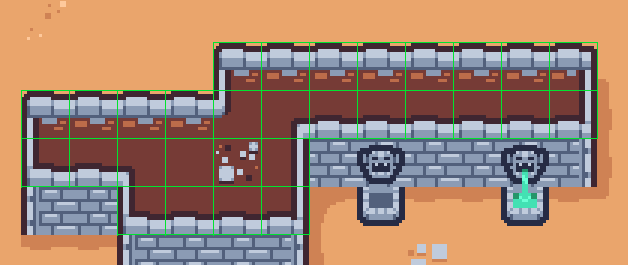 - The second issue is quite more performance hungry. Again, in the case of a 64 x 64 tilemap, in the worst possible case, there are 4096 new colliders. This is unacceptable for performance so we need to simplify the colliders. A basic, yet efficient approach is to implement some sort of greedy meshing algorithm to maximise the surface area of the colliders. I found this blog post for Roblox, it breaks down the algorithm in depth. Using this technique, we can drastically reduce the amount of colliders, especially in larger areas such as the map boundaries.